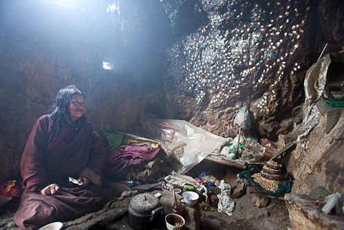 Pilgrims about to cross the 15,000 foot Chola Pass on their 2500 kilometer pilgrimage to Lhasa, prostrating the entire way. The devotion of the Tibetan people is unbelievable.