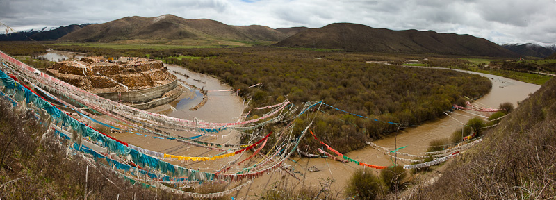 Evidently the funds for all this building is coming from the local Tibetan communities along with some support from Western organizations. The omnipresent prayer flags cover entire hillsides and mountain tops.